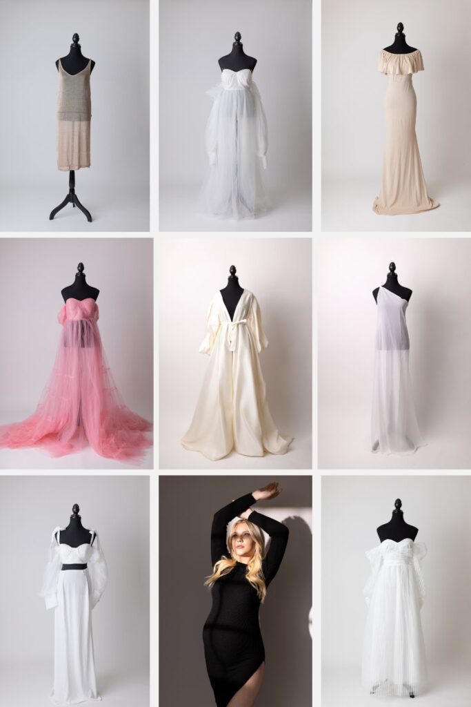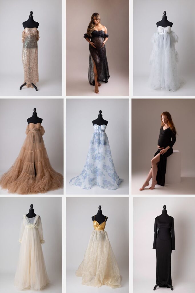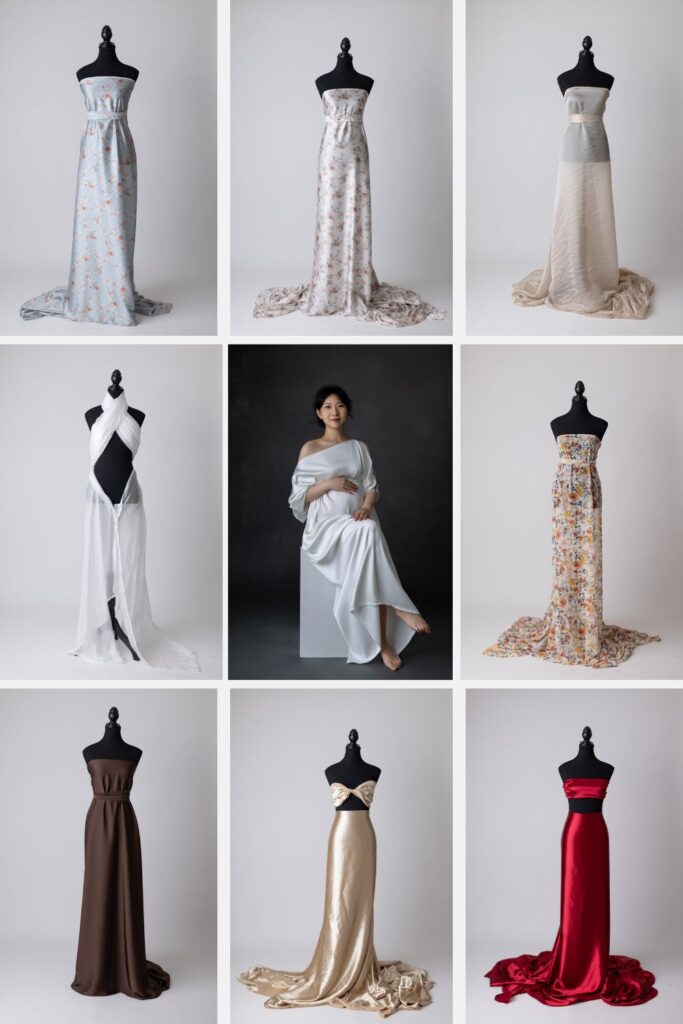 Choosing the perfect outfit is one of the most exciting parts of preparing for your Edmonton maternity photoshoot. At Little One Photography, I offer a curated collection of luxurious maternity gowns designed to flatter every body and reflect your unique style. Whether you’re drawn to flowing fabrics, soft neutrals, or something more bold and dramatic, there’s a gown here to help you feel beautiful and confident during your session. Let’s take a closer look at what’s available in my studio wardrobe for Edmonton maternity clients.